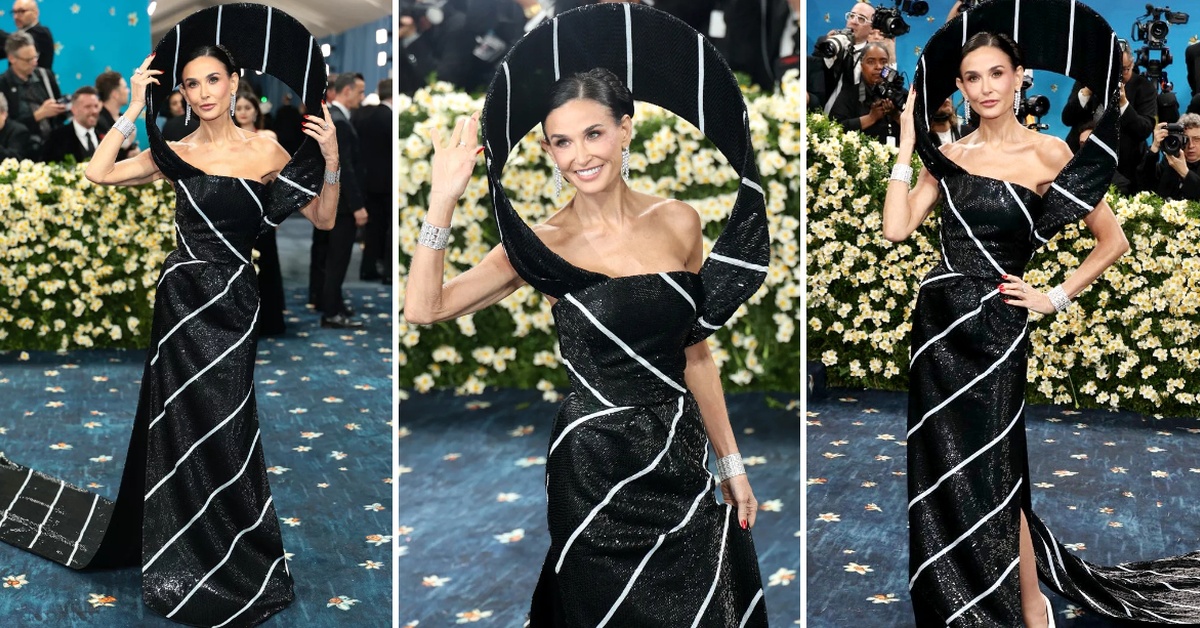 Деми Мур направи вистински моден погодок на балот МЕТ. Во склоп со овогодишната тема и дрес-кодот „Tailored for You“ (Скроено за тебе), кој ја слави машката облека и класичните костуми, славната актерка избра мошне невообичаена креација.