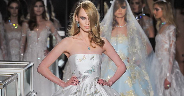 Либанската дизајнерка соработуваше со луксузниот бренд за накит Tiffany & Co. за да ја украси венчаницата со дијаманти од 165 карати и скапоцени камења од 61,9 карати.
