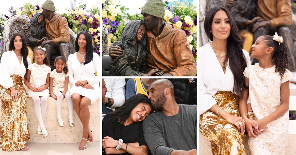Сопругата на Коби, Ванеса Брајант, позираше покрај статуата заедно со останатите нивни ќерки Наталија, Бјанка и Капри.