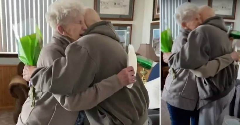 Вечна љубов: Со букет и силна прегратка ја изненади сопругата за 84-тиот роденден откако биле разделени поради изолација