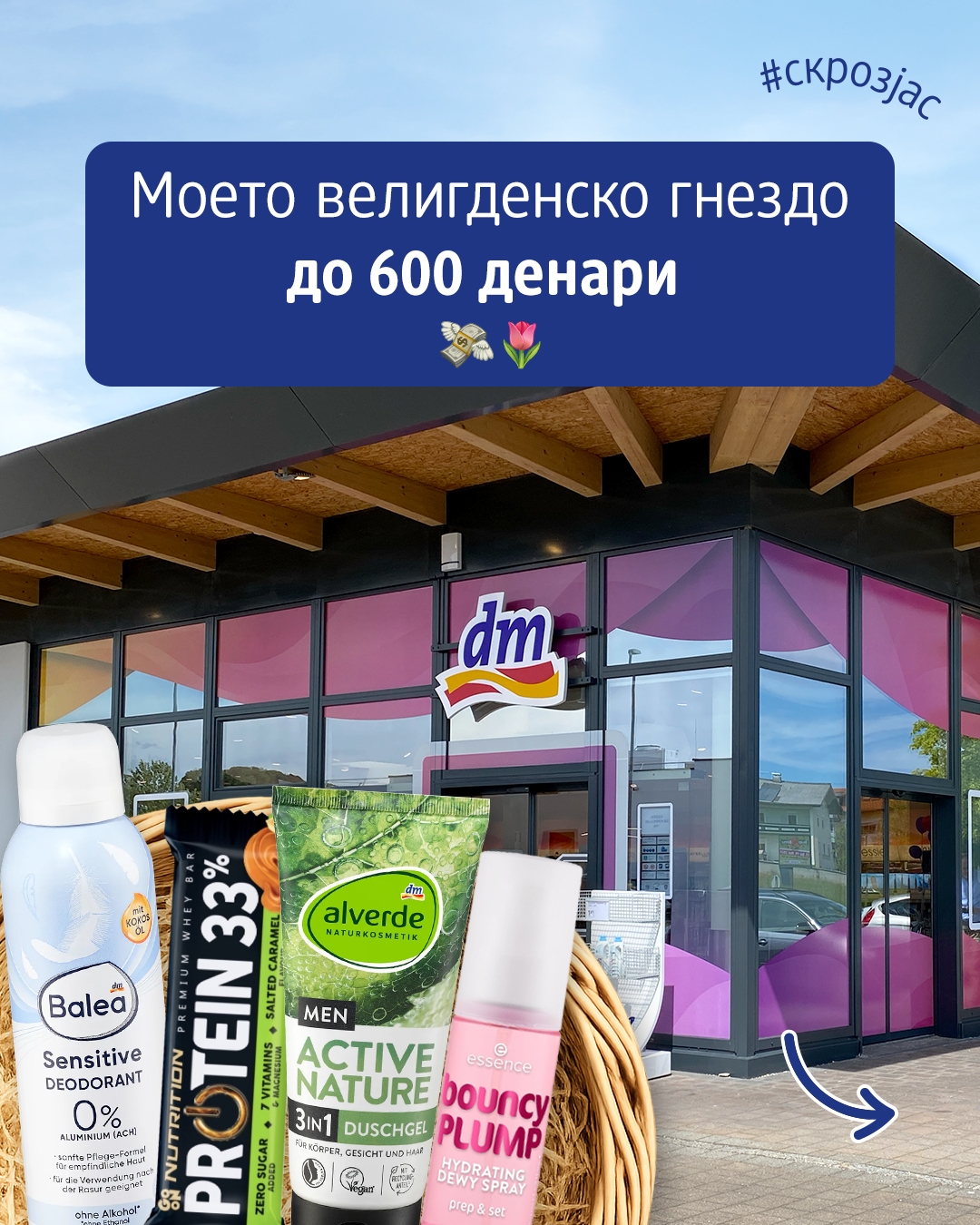 Без разлика дали ќе се избере некој од овие предлози или ќе се состави поинаква комбинација, во dm ве очекува голем избор на производи за нега, хигиена, убавина и секојдневни мали задоволства по секогаш поволни цени. Така, велигденската кошничка може да внесе повеќе боја, свежина и инспирација во деновите пред празникот.