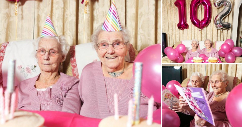 Веселите бабички, кои веројатно се најстарите близначки во Велика Британија, го одбележаа својот 102-ри роденден со колоритна фотосесија.