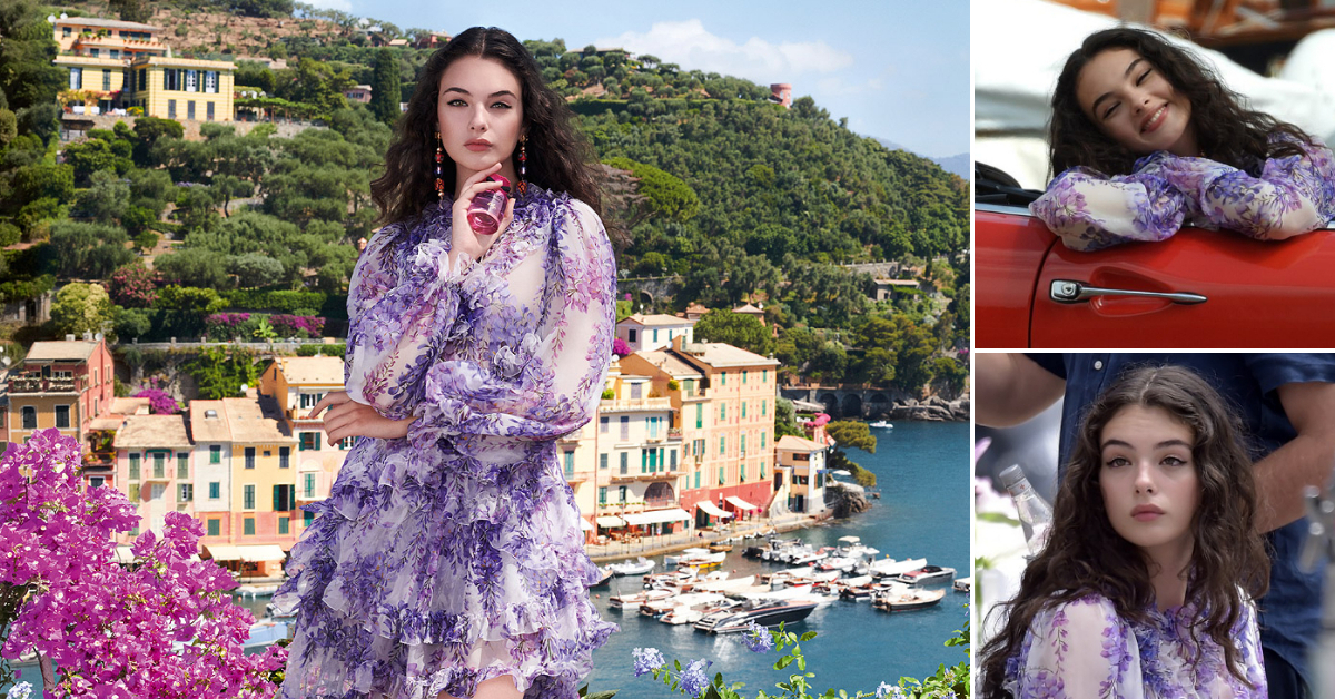 17-годишната ќерка на Моника Белучи и Винсент Касел шармира во рекламното видео и на промотивната фотографија во Портофино облечена во лелеаво виолетово фустанче.