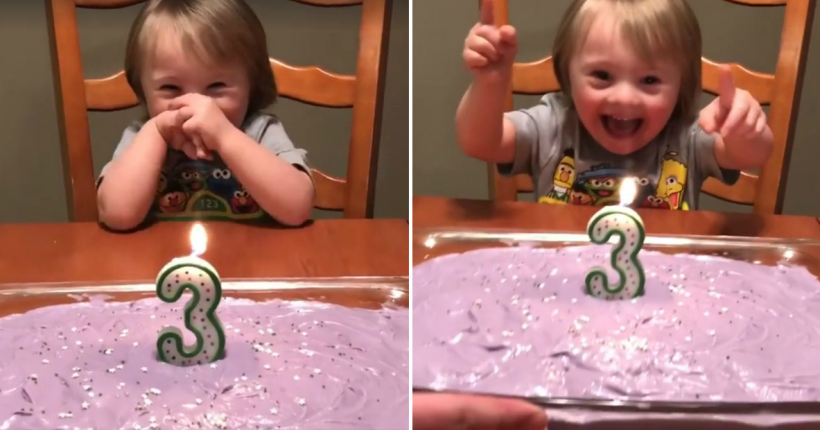 3-годишниот Рет, кој има Даунов синдром, слатко се смее додека родителите и братчето му ја пеат познатата роденденска песна. Видеото од домашната прослава ќе ве расположи: