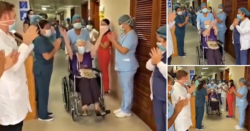 Радосната старица беше испратена од болницата со силен аплауз од страна на медицинските лица.