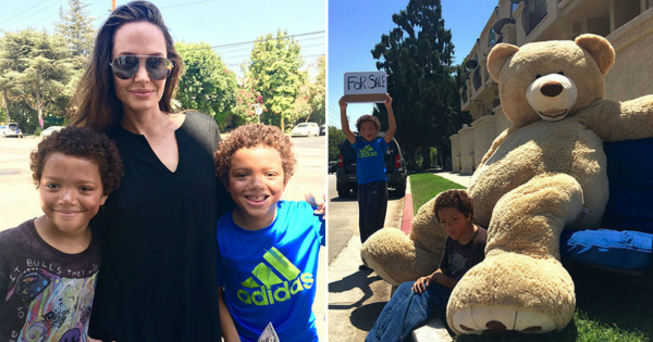 Осумгодишни близнаци добија можност да ја запознаат Анџелина Џоли на многу невообичаен начин. Додека двете деца продавале џиновска плишена мечка на улица, славната актерка застанала и ја купила мечката, плаќајќи им двојно повеќе од она што го побарале.