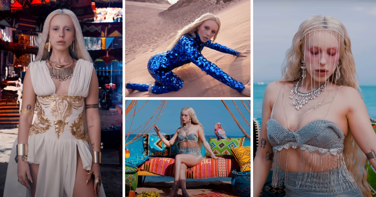 Во видеозаписот, македонската пејачка заведува во три атрактивни аутфити со невообичаена шминка и светли веѓи и трепки.