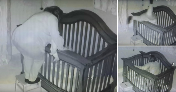Во него, ниската Валери Шарп се поткачува на столче за да го стави бебето во неговото креветче, но губи рамнотежа и се струполува во него. Видеозаписот беше споделен од ќерката на Валери, Ники.