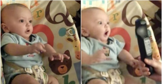 На бебињата сѐ им е ново и интересно и ги возбудуваат дури и најсекојдневни предмети. Во видеото, мало момченце ги ококорува очите и дише забрзано кога ќе здогледа далечински управувач.