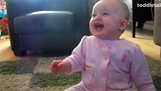 Само безгрижноста може да ви даде слатко смеење како на бебушот во видеото. Животот е убав кога си бебе.