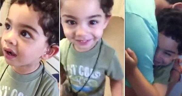 Двегодишното детенце го изгубило слухот кратко по раѓањето. За да му овозможат повторно да слуша и да го поттикнат да зборува, докторите му подариле две специјално дизајнирани помагала за слушање. Видеото е направено по вклучувањето на помагалата.