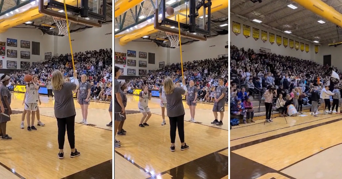 Во него, целата сала молчи за 17-годишна слепа девојка да може да го слушне чукањето на обрачот за ориентација и да стави кош.