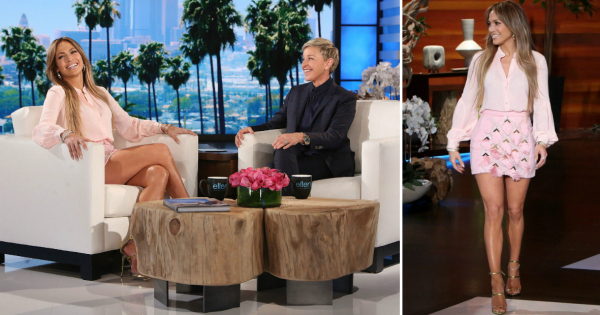 47-годишната музичка ѕвезда се појави во младешка розова комбинација во студиото, каде одговараше на прашања поврзани со нејзината кариера, но и со нејзиниот љубовен живот кој честопати е жешка тема во медиумите. Елен не пропушти да ја праша Лопез со кого го помина Св. Валентин, покажувајќи во позадина фотографии од славната пејачка и Дрејк.