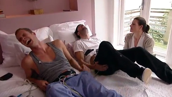 Лудите холандски водители Денис Сторм и Валерио Зено врескаа и се виткаа од болка кога во својата емисија „Зморчиња“ искусија симулирани породилни контракции.