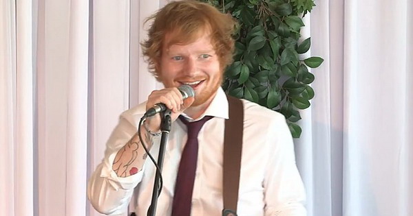 Талентираниот пејач во живо им ја испеа „Thinking Out Loud“ на парот кој ја избра емотивната балада за својот прв свадбен танц.