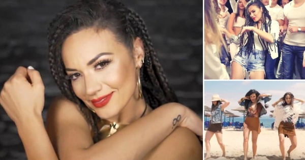 Убавата македонска пејачка лудо се забавува со пријателите во видеозаписот, кој бил снимен во Грција.