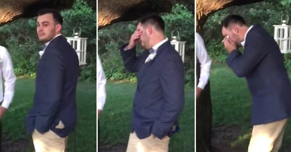Реакцијата на младоженец кога ќе ја здогледа својата сакана во невестински фустан ќе ви го стопли срцето. Конер Кортни не можел да си ги задржи солзите кога невестата Хана и нејзиниот татко започнале да чекорат кон него.