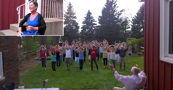 Педесет лица од пет различни држави допатувале во еден ист двор за преку танц да ја израдуваат Ејми еден ден пред нејзиниот 56. роденден.
