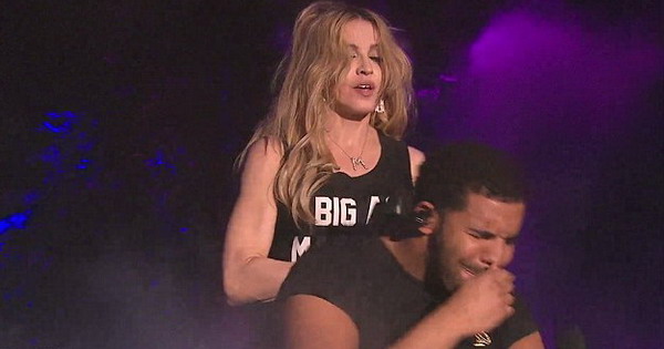56-годишната пејачка му беше специјална гостинка на Дрејк за време на неговиот настап. Во еден момент, таа му пријде на Дрејк кој седеше на стол и му подари долг, сочен бакнеж. Гримасите на 28-годишниот рапер по бакнежот, кои изразуваа чувства како одбивност и згрозеност, родија безброј шеги.