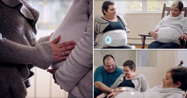 Нема да останете рамнодушни на реакцијата на идна мајка кога за првпат ќе го почувствува клоцањето на своите деца од утробата на сурогат-мајка со помош на нова технологија.