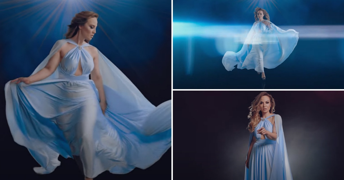 Во музичкиот спот, шармантната ѕвезда носи сина креација.