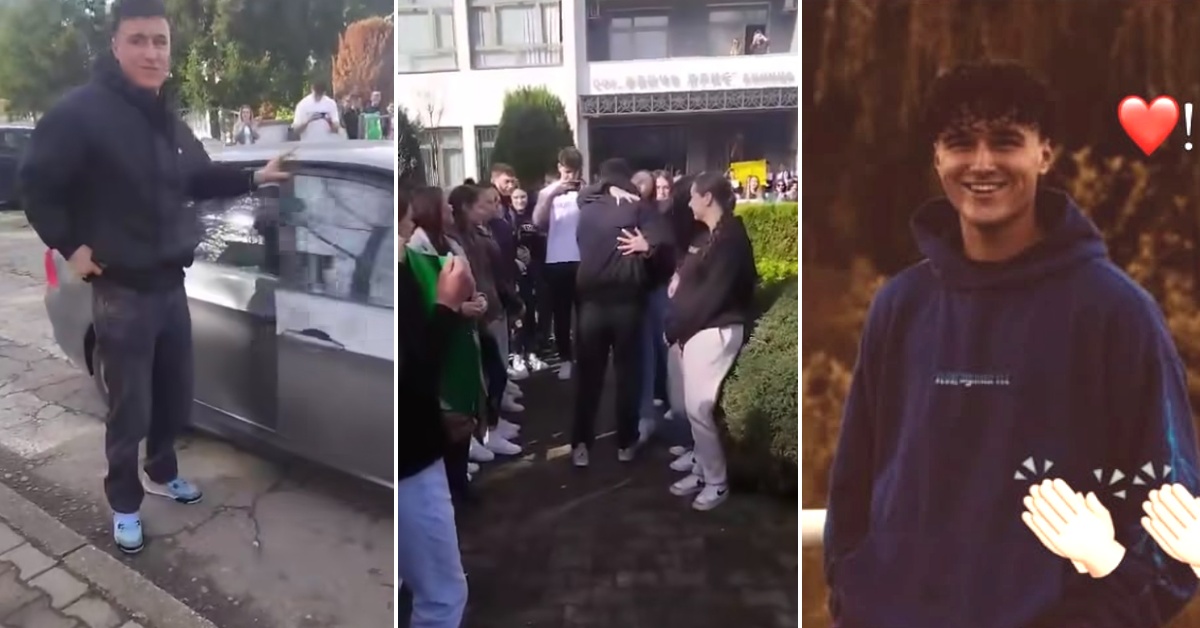 ВИДЕО: Јован Костадинов, кој спаси 20 деца во Кочани, со аплаузи и прегратки пречекан во Гимназијата во Виница