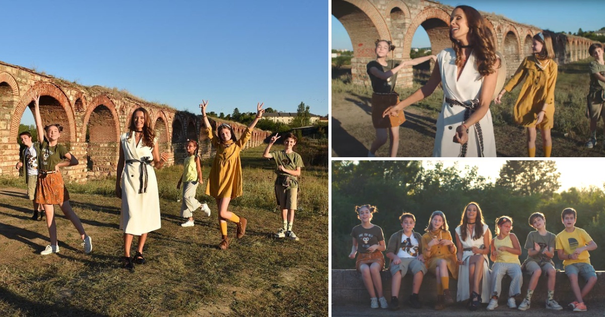 ВИДЕО: Каролина Гочева со ѕвездите од „Дајте музика“ пее и се забавува кај скопскиот аквадукт