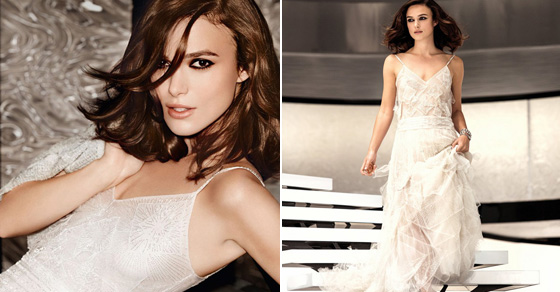 За кампањата 28-годишната филмска ѕвезда носи гламурозен фустан од високата мода на Шанел.