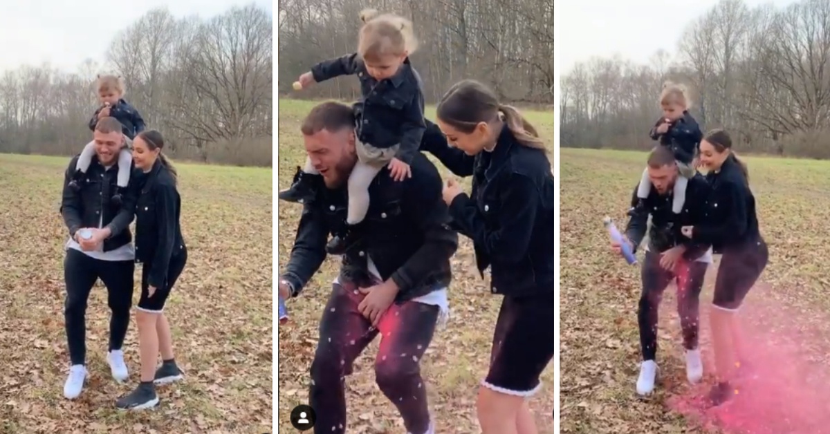 Блогерката Анет Дитген позираше заедно со саканиот и нивната мала ќеркичка, додека со нетрпение очекуваше да дознае дали носи момче или девојче.