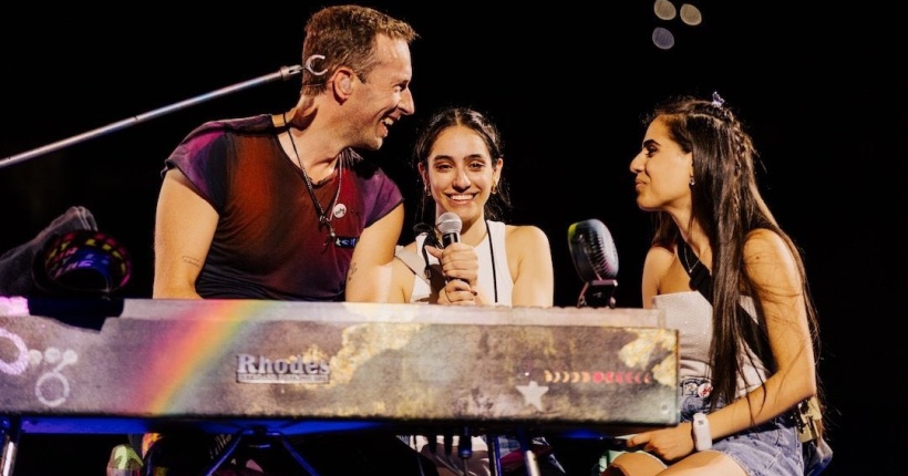 На двата концерти, десетици илјади фанови на британскиот рок бенд пееја и танцуваа на Олимпискиот стадион во главниот град на Грција. Меѓу нив беа и Елена и Андреа, две сестри кои пејачот Крис Мартин ги покани на сцената да ја отпеат заедно со него песната „Everyday Life“.