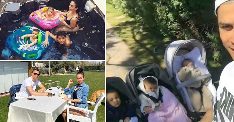 Успешниот фудбалер сподели видео од релаксирана прошетка со трите мали деца и девојката Џорџина Родригез. Во видеозаписот, близначињата Ева и Матео и слатката Алана Мартина мирно си лежат во количката.