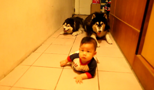 Слаткото видео во кое две кучиња имитираат бебе што лази со сигурност ќе ви го подобри расположението.