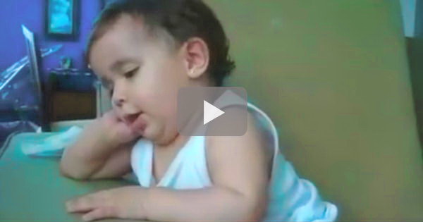 Во видеото, кое за само 10 дена има над 23 милиони прегледувања на Facebook, слатката брбливка на бебешки јазик „зборува“ на телефон, гестикулирајќи со раката.