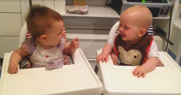 Во две и пол минутното видео, 10-месечните „смешковци“ постојано се кикотат, а нивната заразна смеа ќе се прелее и на вашето лице.