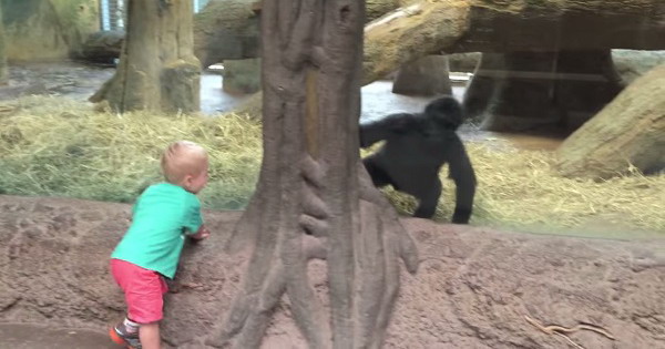 Детската игра не познава граници. Погледнете слатко видео во кое мало дете игра криенка со горила во зоолошка градина. Заразната смеа на момчето и лудориите на малата горила неизбежно ќе ви измамат насмевки.