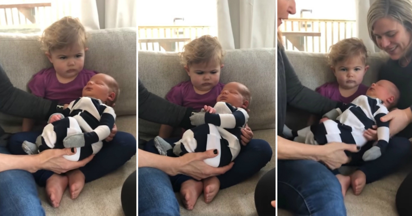 Погледнете видео, кое стана хит на социјалните мрежи, од девојче кое останува рамнодушно кога за првпат ќе му го стават новородениот брат во скутот:
