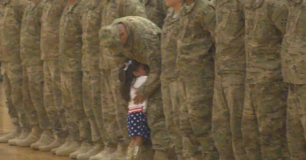 Девојче, кое не може да дочека да заврши церемонијата за пречек на војниците за да го гушне својот татко, ќе ви го стопи срцето. 3-годишната Кара го немала видено татко си 8 месеци, колку што траела неговата служба во југозападна Азија.