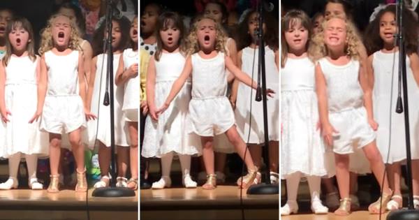 Во видеото објавено од нејзината мајка, 4-годишната Софија со жар настапува на сцената со песната од Moana „How Far I’ll Go“, засенувајќи ги своите врсници.