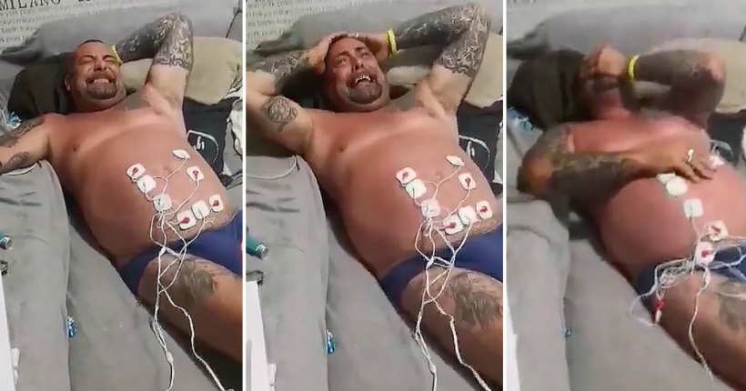 Неговата сопруга Џоди со радост го сподели видеото во кое тој искусува симулирани породилни болки и не може да издржи ниту половина минута.