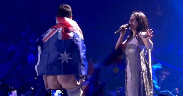 ВИДЕО: Маж се качи на сцената и го покажа задникот пред милионската публика на Евровизија