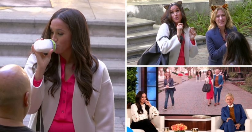 ВИДЕО: Меган Маркл пие млеко од бебешко шише и се однесува шашаво на скриена камера во шоуто на Елен