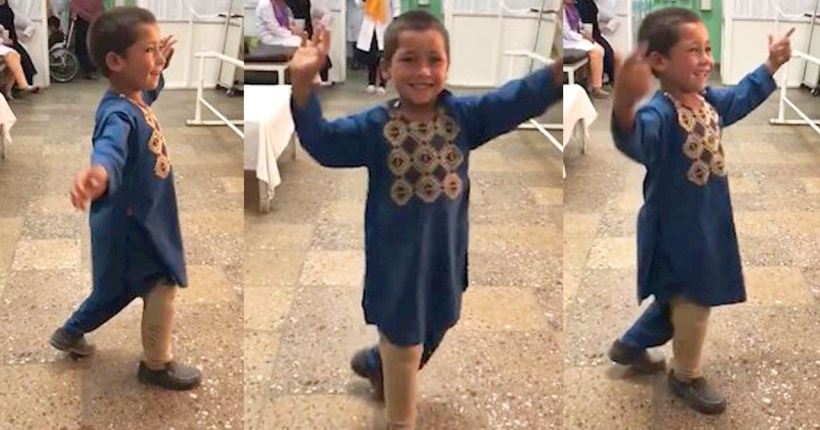 Видео од 5-годишно момче од Авганистан, кое танцува откако доби нова протетичка нога, ќе ви го згрее срцето.