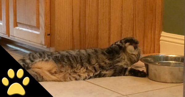 Мачките по природа се хиперактивни, разиграни и растрчани, но оваа мрзелива мачка е исклучок, бидејќи не сака ни да се исправи на нозе за да се напие вода.