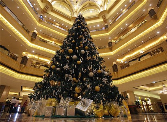 Emirates Palace, којшто ја има 12 метри високата елка, е истиот хотел кој го постави и првиот „златомат“ (банкомат од кој наместо пари можете да вадите картички злато).