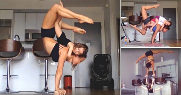 Флексибилната мајка, која во минатото настапувала во акробатското шоу „Cirque du Soleil“, споделува кратки снимки и фотографии со илјадниците обожаватели на Instagram и редовно мами комплименти.