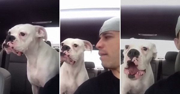 Налутеното куче во видеото на свој јазик се расправа со сопственикот поради тоа што посетата на паркот за кучиња траела прекратко.