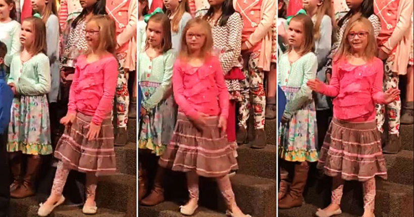 Во видеото споделено од нејзината мајка, 6-годишната Лорен настапува во црковен хор, но додека другите деца не се помрднуваат, таа безгрижно танцува.