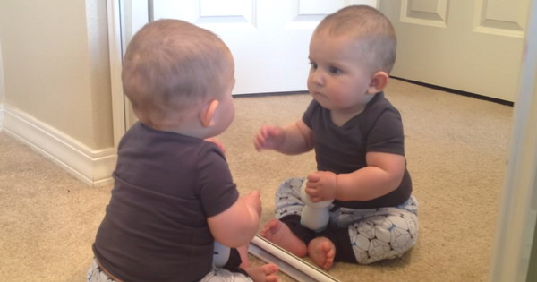Мало бебе не се препознава себеси по потстрижување. Неговата реакција кога ќе се „сретне“ со одразот во огледалото е снимена од неговата мајка.