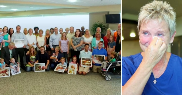 Сега, тие родители и бебињата кои поминале низ рацете на Рене се собраа на едно место за да ја изненадат и да ѝ порачаат дека таа е нивен херој. Погледнете: