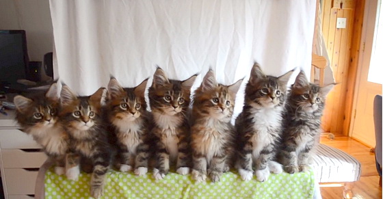 Што е послатко од мало маче кое љубопитно следи предмет во движење? Седум мачиња кои се движат синхронизирано, шарајќи со погледот.